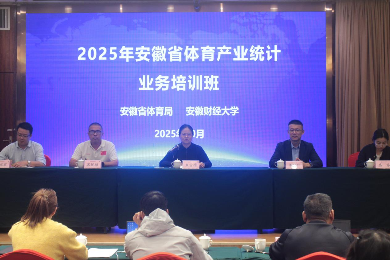 10月16-17日,由安徽省体育局主办、安徽财经大学承办的2025年全省体育产业统计业务培训班在蚌埠成功举办。省体育局经济处副处长朱雪梅、体育教学部主任姜同仁出席开班仪式。来自全省16个地市的体育产业统计工作负责人及业务骨干、省体育产业重点研究基地研究团队成员、深圳市维度数据科技股份有限公司业务人员参加培训。